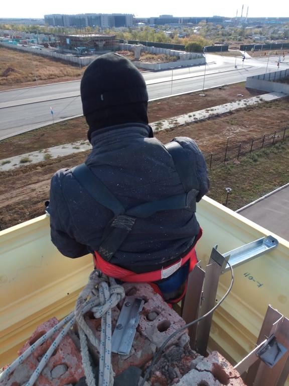 4. Силами наших альпинистов провели работы по восстановлению фасада из керамагранита и травертина.